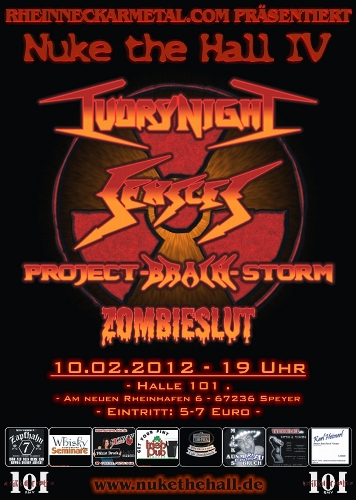 10.02.12 | "Halle 101" Speyer | Ivory Night, Sensles, (wir), Zombieslut | NUKE THE HALL IV www.nukethehall.de www.myspace.com/nukethehallspeyer Eintritt 7 Euro Abendkasse / 6 Euro Reservierung / 5 Euro Vorverkauf (ab jetzt) |