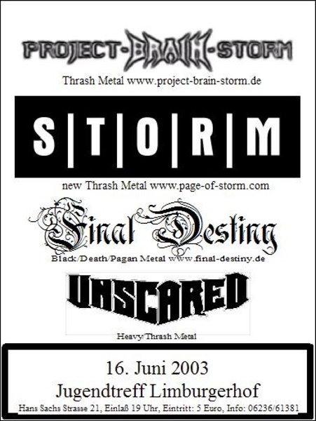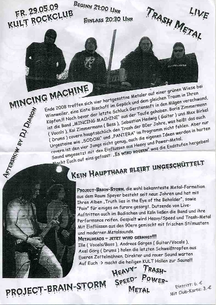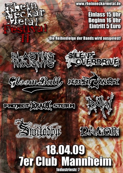 18.04.09 | "7er Club" Mannheim | Blasting Thoughts,(8) Dagor, (7) Gloomball,(6) Perish Sanity, (3) (wir), (1) Raw,(5) Smilodon, (4) Silent Overdrive (2) |