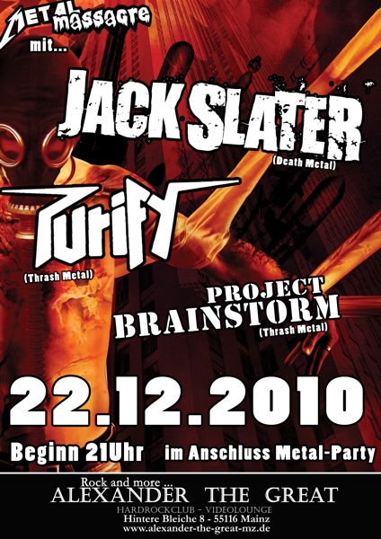 22.12.10 | "ATG" Mainz | Jack Slater, Purify, (Wir) | Weitere Infos folgen Alexander the Great |