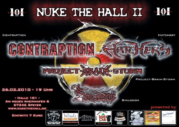 NUKE THE HALL II www.nukethehall.de www.myspace.com/nukethehallspeyer Eintritt 7 Euro Abendkasse / 6 Euro Reservierung / 5 Euro Vorverkauf (ab 01.01.10.) Video gedreht Review auf The Pit |