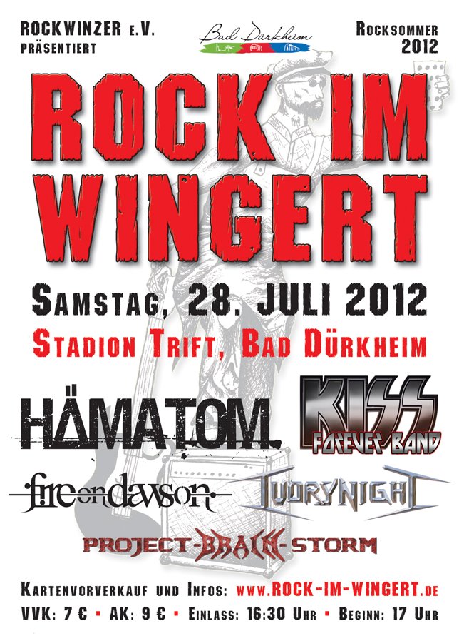 | 28.07.12 | "Rock Im Wingert" Bad Dürkheim | Kiss Forever, Hämatom, Ivory Night, Fire on Dawson, (wir) |